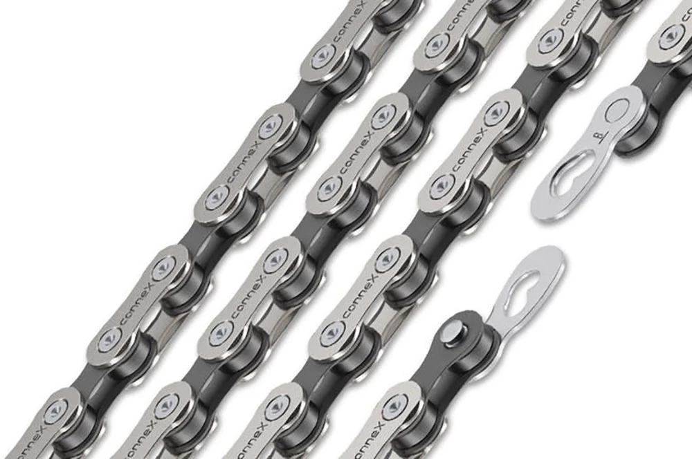 Die Wippermann Connex Kette 804 ist mit hochwertigen vernickelten Außenlaschen und hervorragenden Schalteigenschaften ausgestattet. Die bewährte Kontur der Außenlasche garantiert leises und präzises Schalten, während die Radialnietung maximale Widerstandsfähigkeit und Sicherheit bietet.
