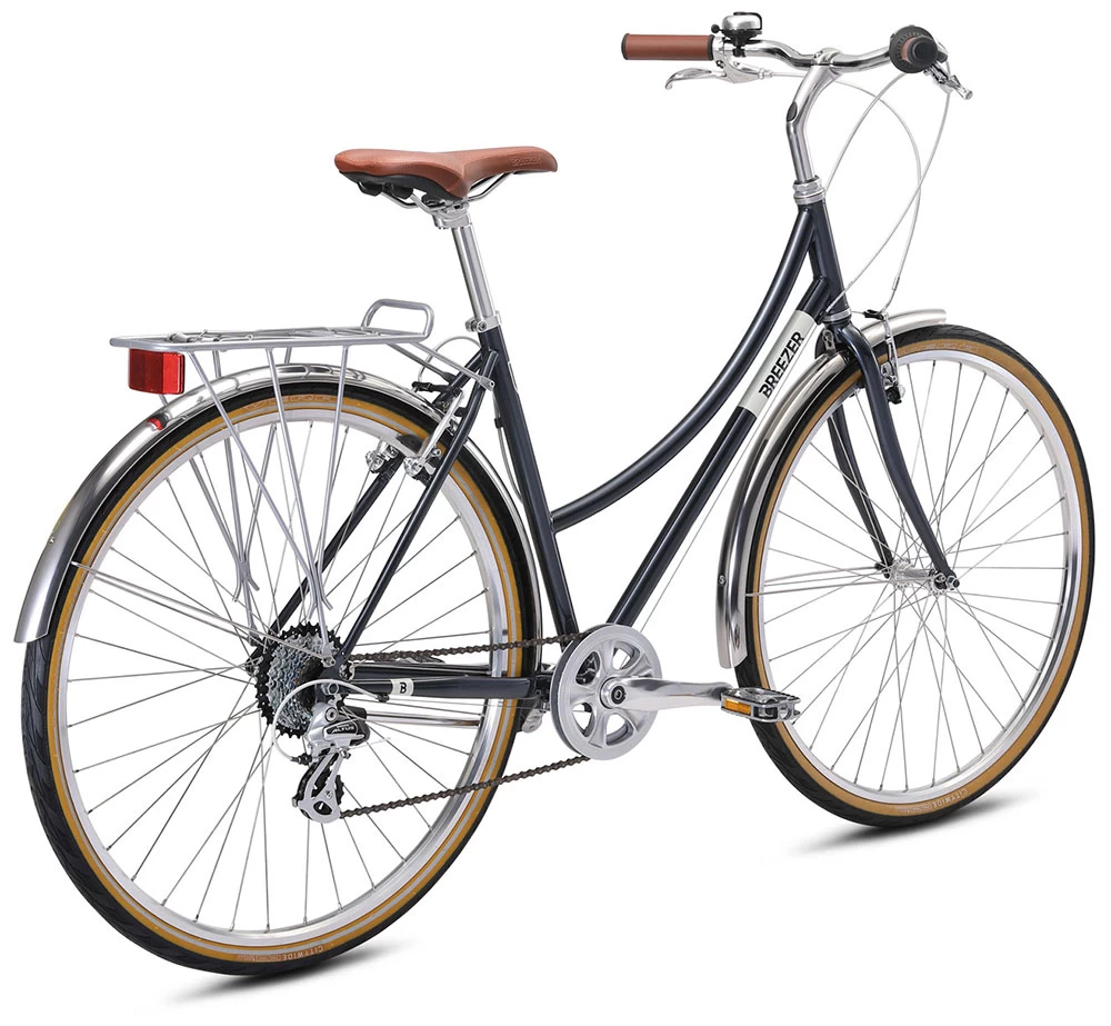Das Downtown ist das klassisches Alltagsrad von Breezer aus Chromoly-Stahl mit 28-Zoll-Laufrädern und allem, was dazugehört: farbliche passende Schutzbleche und Kettenschutz, Gepäckträger, sichere Bremsen und eine komfortable Sitzposition.