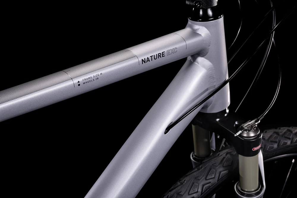 Keine Frage, hoher Fahrkomfort geht nur mit Federgabel, weshalb Cube dem Nature EXC auch eine Luftfedergabel von Suntour verpasst hat. Sie lässt sich ganz einfach und ganz präzise auf die jeweils gewünschte Mischung aus Komfort und Kontrolle einstellen.
