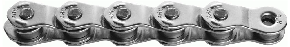 Die HL1 Wide Singlespeedkette von KMC mit Halben Kettenglieder und einer vernickelten Oberfläche für BMX, Nabenschaltungssystem und andere Single-Speed-Systeme, die eine direkte Kraftübertragung benötigen.