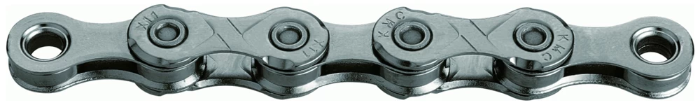 Die super leichte X11 11-fach Kette von KMC ohne Laufrichtungsabhängigkeit und vernickelten Außenlaschen für 11-fach Schaltsysteme.