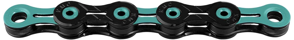 Die super leichte X11 DLC 11-fach Kette von KMC ohne Laufrichtungsabhängigkeit und einer Diamond Like Coating Oberflächenbeschichtung für 11-fach Schaltsysteme.