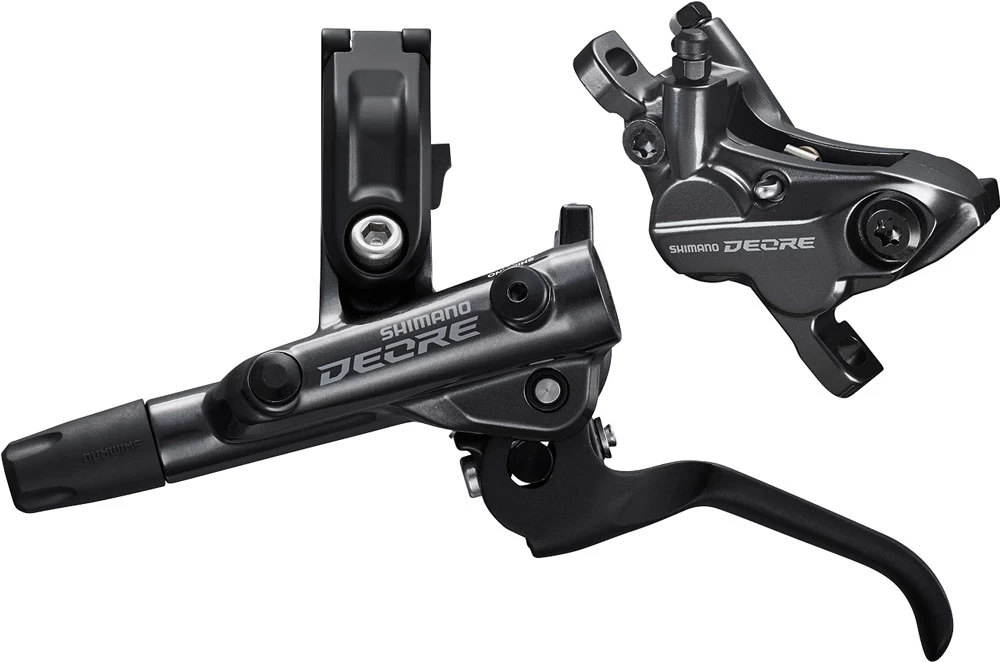 Die hydraulische DEORE BR-M6120 4-Kolben-Scheibenbremse mit 2-Finger-Bremshebel von Shimano fügt sich nahtlos in das starke Line-up der neuen DEORE M6100 Gruppe ein. Die Highlights: mehr Bremskraft mit geringerem Kraftaufwand und eine extrem lineare Reaktion auf die Hebelbewegung.