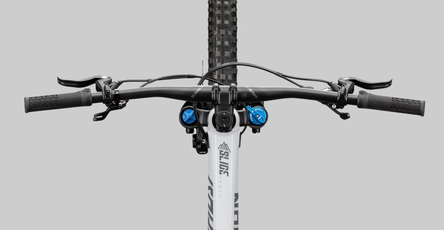 Die Fox 36 Performance Federgabel mit 150mm und der Fox Float DPS Performance Dämpfer mit 140mm Federweg geben Dir die benötigte Performance, um jedes Hindernis mit Eleganz und Leichtigkeit zu bewältigen. Die Zusammensetzung aus Race Face Aeffect R Vorbau und Lenker demonstriert den roten Faden, das dieses Trailbike verfolgt. Der SRAM Antrieb glänzt mit seiner Zuverlässigkeit. Die Kombination aus einer 12-fach SRAM Eagle Schaltgruppe bietet die perfekte Übersetzung, um nicht nur die Berge zu besteigen, sondern auch den Speed auf allen Wegen zu halten! Eine Magura MT5 Vierkolben Bremsanlage vorne und hinten rundet den Grundgedanken einer einheitlichen Interaktion der Komponenten ab, sodass eine absolut aufeinander abgestimmte Funktionalität herausgekitzelt werden kann. Diese Vollkommenheit macht sprachlos! Doch das SLIDE TRAIL AL 8.0 setzt noch einen obendrauf! Mit dem aggressiven Magic Mary an der Front und dem geschmeidigen Big Betty am Heck aus dem Hause Schwalbe, beide mit ADDIX Soft Gummimischung und Supertrail Karkasse, hast Du stets endlosen Grip und volle Kontrolle auf dem Trail. Abgerundet wird das grandiose Gesamtpaket durch den leichten SUNringlé Düroc 35 Expert Systemlaufradsatz. Grenzenloser Fahrspaß mit dem SLIDE TRAIL AL 8.0!